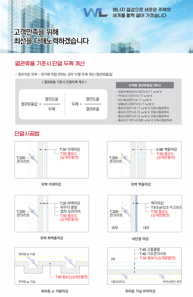열관류율 기준시 단열 두께 계산